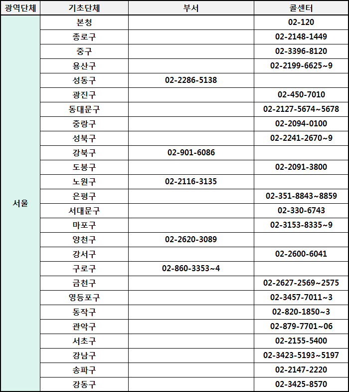 ▶ 서울특별시 긴급재난지원금 문의 전화
